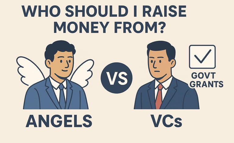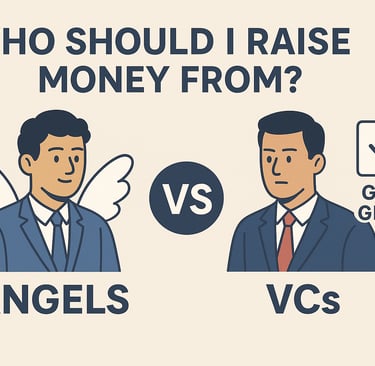The right choice depends on your startup’s maturity: angels fit seed/pre-seed or first-dollar rounds; VCs come in when you’re gaining traction and scaling up. Avoid wasting time pitching a concept-stage idea to established VCs looking for proven growth and market-fit.